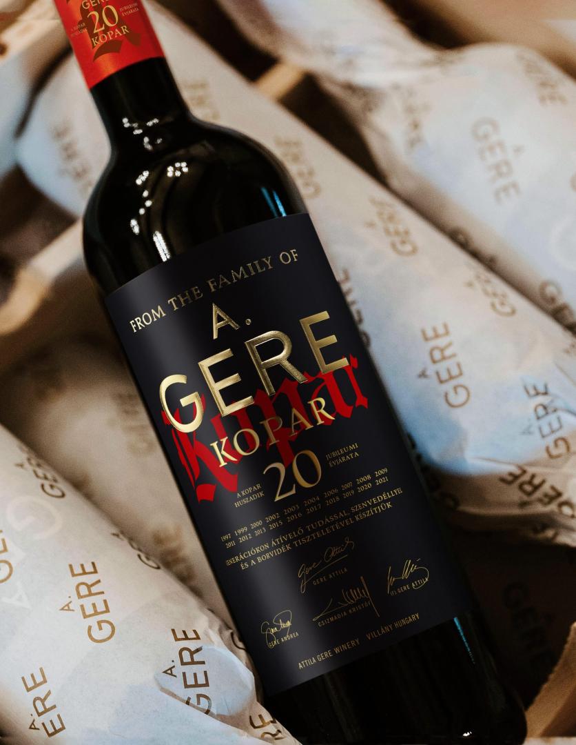 Ezt a 20. jubileumi évjáratot a Gere család szeretné emlékezetessé tenni, ezért csak erre az évjáratra készített különleges címkével láttak el 1-1 palackot, melyben egyesítették a KOPAR múltját, jelenét és jövőjét. A jubileumi címke, csak az előjegyzett faládák 1-1 palackjára került, mintegy megköszönve a bizalmat az előjegyzésben résztvevőknek.